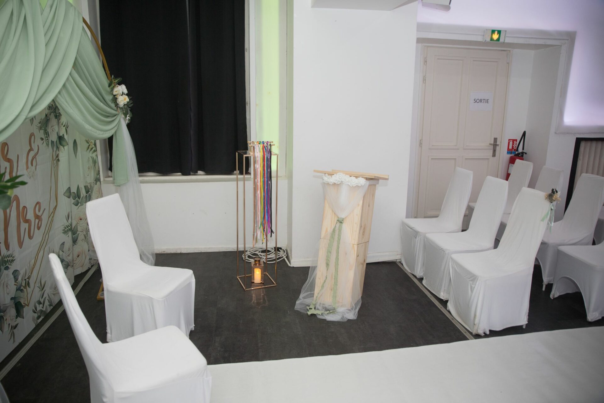 Décoration Florale possible (fleurs fraiches ou artificielles, initiales et/ou date … – en option